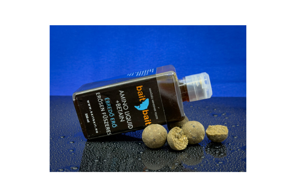 A Bait Bait Liquid Aminója egy különleges összetételű étvágyfokozó folyadék. Magas természetes cukortartalommal, ezenfelül egy speciális aminosav keverék teszi egyedibbé. Kúszó képességének köszönhetően a bojlikat lelocsolva mélyen a belsejébe szívódik. Speciális anyag összetevőjének köszönhetően a bojli felszínét elkezdi feloldani, így elérve gyorsabb hatást. Extra Betain tartalom jellemzi ezt a sűrű PVA barát folyadékot.