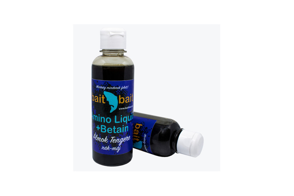 A Bait Bait Liquid Aminója egy különleges összetételű étvágyfokozó folyadék. Magas természetes cukortartalommal, ezenfelül egy speciális aminosav keverék teszi egyedibbé. Kúszó képességének köszönhetően a bojlikat lelocsolva mélyen a belsejébe szívódik. Speciális anyag összetevőjének köszönhetően a bojli felszínét elkezdi feloldani, így elérve gyorsabb hatást. Extra Betain tartalom jellemzi ezt a sűrű PVA barát folyadékot.