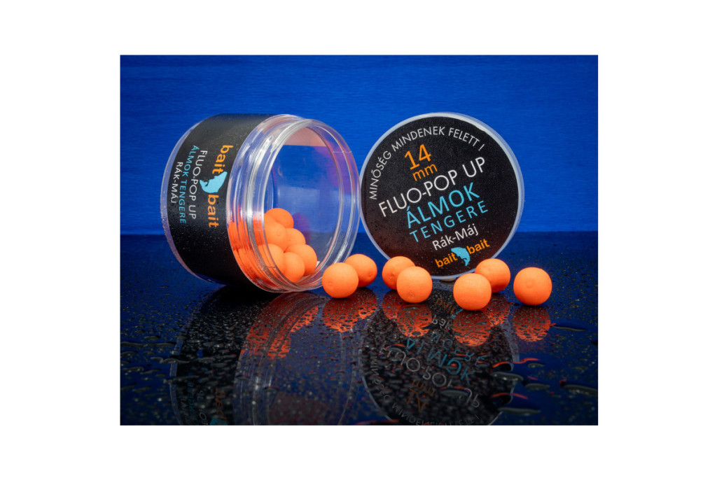 A Bait Bait Fluo Pop-Up bojlijaink nagyon élénk színekkel, erőteljes aromával, valamint hosszantartó lebegő képességgel rendelkeznek. Anyagukban extra mennyiségű étvágyfokozókat és aminókat tartalmaznak. A csalik csomagolás előtt is átesnek egy étvágyfokozó fürdőn, hogy minél aktívabban és minél frissebben várják, hogy bevessék Őket. Anyagösszetételük egyedülálló a magyar piacon, nagyon egyedi alapanyagok alkotják. Ezeket a csalikat volt a legnehezebb megalkotni, mivel itt is arra törekedtünk, hogy egy kimagasló minőségű csali kerüljön a horgászok kezébe. A fejlesztések alatt rengeteg keverési arányt kipróbáltunk, de itt is a tökéletességre törekedtünk, így sikerült ezeket a csalikat megalkotnunk. Ezen Pop-Upokat enyhén gumis állag, és szinte szétnyomhatatlan szerkezet jellemzi. A csalik szerkezete lehetővé teszi az utólagos plussz dippelést is.