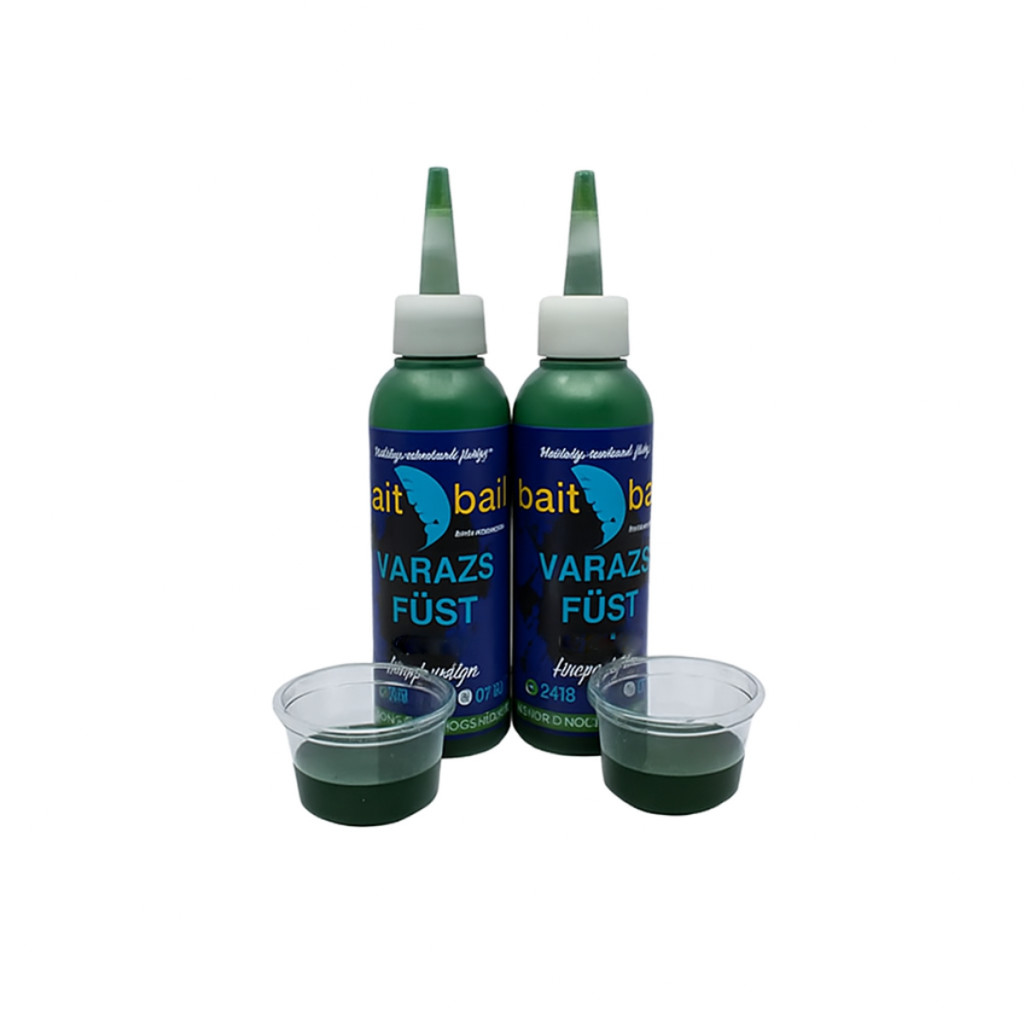 Egyre népszerűbb a vizuális ingerekkel rendelkező termékek alkalmazása. Köztudott, hogy a hal egy kíváncsi állat, bármilyen külső ingert érzékel maga körül, azonnal érdeklődőbbé válik. A Varázsfüst egy igen látványos hatást kelt a víz alatt, ami azonnal táplálkozásra ösztönzi a célhalainkat. Nem szerettük volna itt sem alacsonyra tenni a mércét, ezért törekedtünk a tökéletességre. A liquidben rengeteg étvágyfokozó kapott helyett, és emellett egy liftező effektussal is rendelkezik, aminek köszönhetően vertikálisan, és horizontálisan is kifejti a hatását. A palettánkon megtalálható kilenc féle íz mindegyikéből kapható piros és zöld színben is. Felhasználása igen széleskörű, legyen szó bojlis, vagy feederes technikáról. A csalira és az etetőanyagra is rányomhatjuk, emellett a napjainkban elterjedt PVA Bag-es módszer elengedhetetlen kelléke.