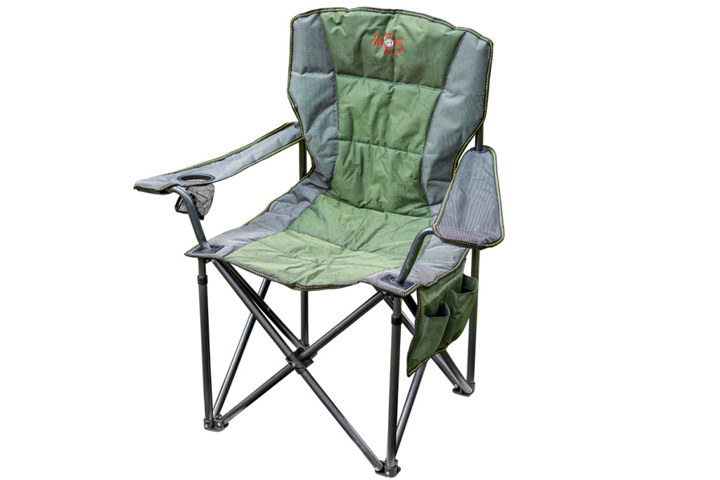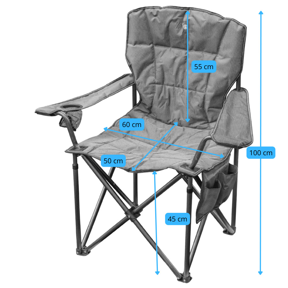 Erős szerkezetű masszív összecsukható karfás horgász szék strapabíró huzattal. Italtartóval és oldalzsebekkel ellátott és hord táskával kapható.