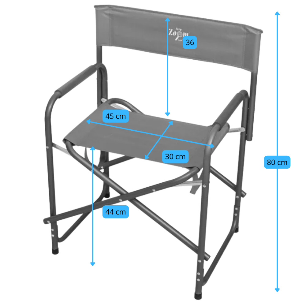 Erős összecsukható szék 22 mm átmérőjű könnyű vascső vázzal és erős fogantyúkkal a szállításhoz.