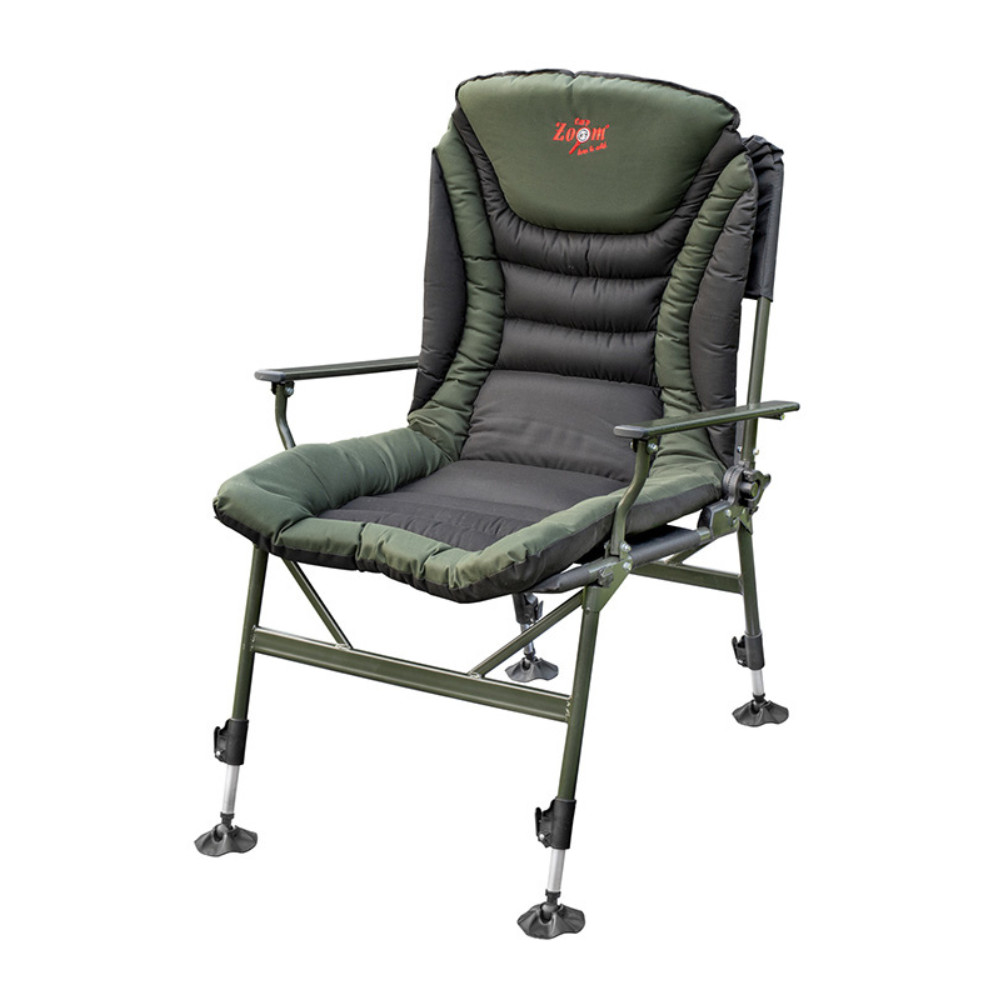 Masszív, erős vázszerkezettel készült a Carp Zoom Massive Armchair karfás horászfotel, melyre kényelmes, vastag, párnázott párna került. A támla széles tartományban dönthető, és ahogy a lábak, ez is strapabíró villámzárral pillanatok alatt rögzíthető a kívánt pozícióban. A nagyméretű tappancsok nedves talajon sem süllyednek el, dönthetőek, a láb hosszának szabályozásával egyenletlen talajon is stabilan felfekszenek. A Carp Zoom Massive Armchair horgászfotel tökéletes választás többnapos horgászatokhoz, kempingezéshez, akár termetes horgászoknak is.
