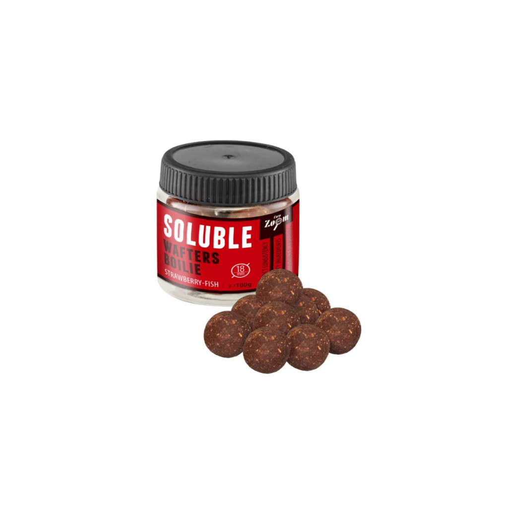 · Carp Zoom Oldódó Wafters bojli, Eper–hal, 18 mm, 100 g
