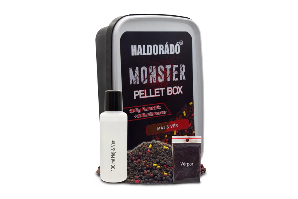 A bojlikészítésben régóta jól ismertek az olyan, emberi orr számára kevésbé kellemes adalékok, mint a vérliszt, májliszt, különböző hallisztek, vagy akár a csípős fűszerek. Nos, a MONSTER Pellet Boxok pont olyan dolgokat tartalmaznak, amelyek kellemetlen „illatuk” ellenére nagyon komoly távcsali hatással bírnak, főként a termetes pontyokra. Ezek a büdös, de borzasztóan magas tápanyagtartalmú eledelek négy különböző formában kerülnek forgalomba. A dobozokban a pelletkeveréken kívül található 100 ml aromásított folyadék, amely pont elegendő a pellet szemek felpuhításához, használatba vételéhez.