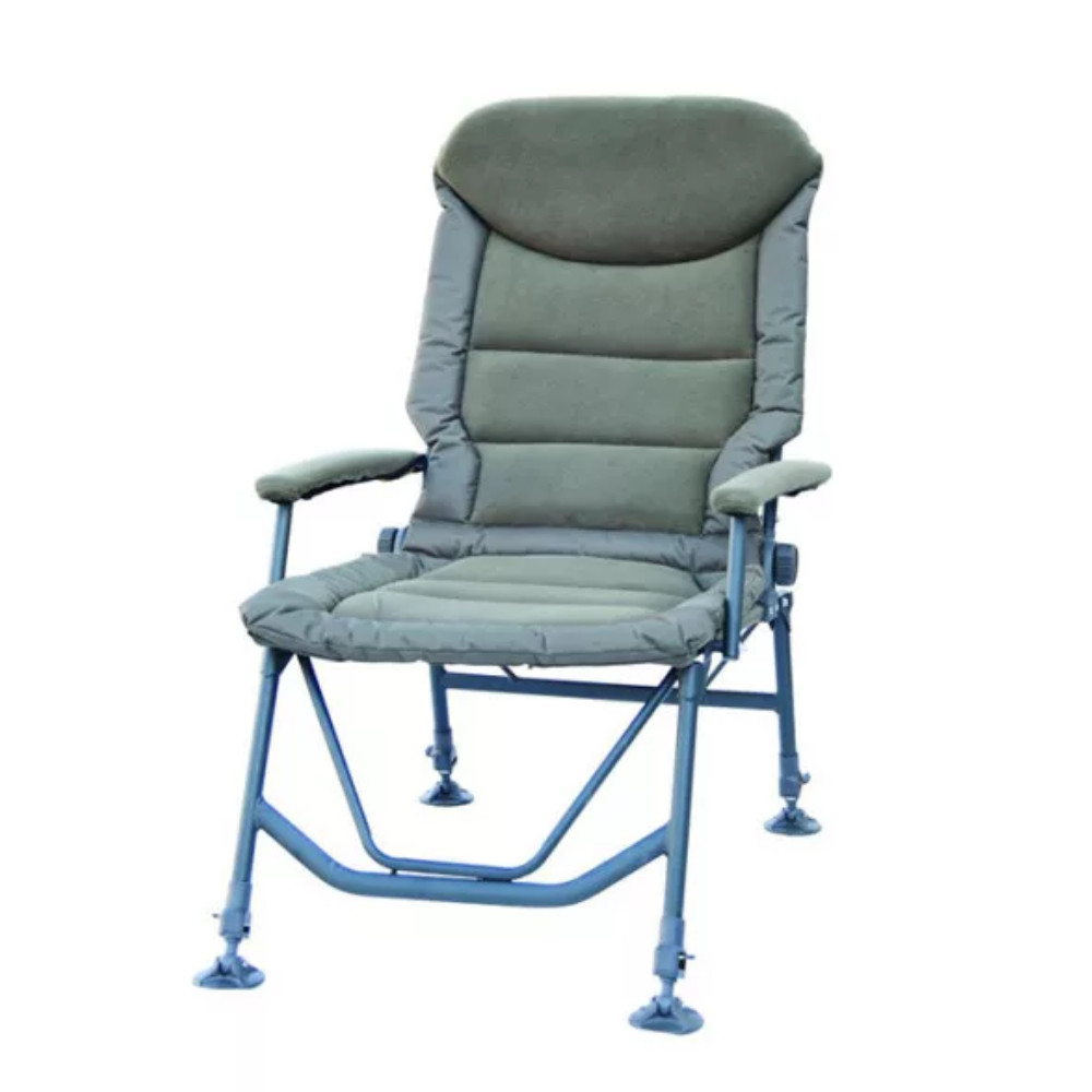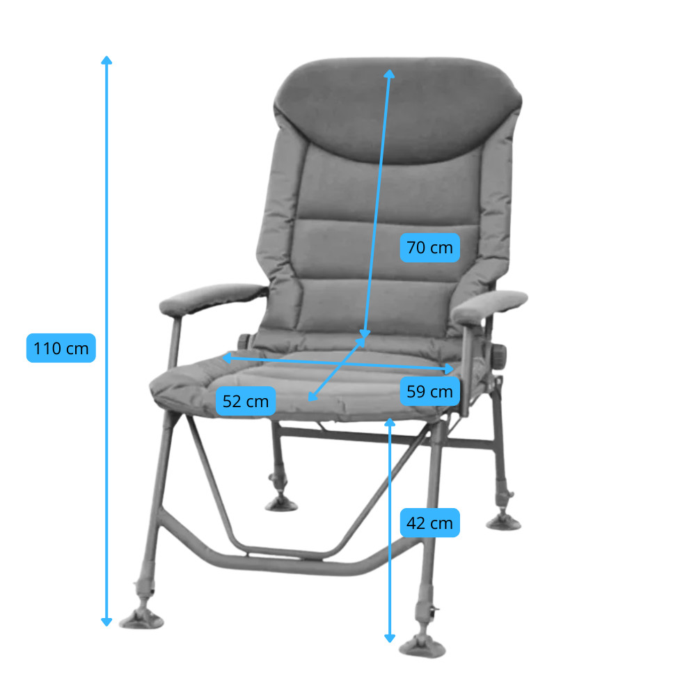 A több napos horgásztúrákon kétségtelenül fontos szempont a kényelem. A Marshal VIP horgásszékkel megtapasztalhatjuk az igazi vízparti kényelmet. Az extra erősítésekkel készült szék a nagytermetű horgászok elvárásainak is megfelel. Megnövelt alapmagasság, széles ülőfelület és magas háttámla jellemzi, amely ráadásul tág határok között dönthető. Az egyenként állítható lábak segítségével könnyen a terepviszonyokhoz tudjuk állítani a lábak magasságát, a nagyméretű önbeálló tappancsok pedig még sáros talajon is stabilan megállnak. A karfák – az ülőfelülethez hasonlóan – kényelmes és tartós borítást kaptak.