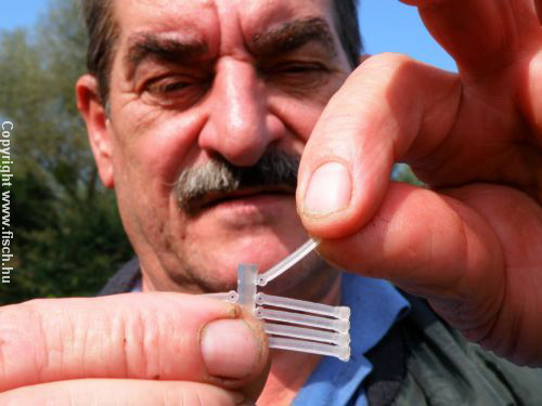 Szóval Pistabácsi amolyan „retrópecás" lévén azért nem feltétlenül veti meg a reformokat sem. Kapott már a családtól ajándékba feederbotot, hosszú nyelű merítőhálót cserélhető fejekkel, két méter hosszú szákot, amiben a hal nem nyomorodik meg. Természetesen ezeket mind előszeretettel használja, és semmi pénzért nem válna meg tőlük. Ennek örömére egy hirtelen ötlettől vezérelve titokban elhatároztam, hogy közeledő közös horgászatunk alkalmával megtanítom pellettel csalizni, kérdés az volt, hogy hogyan fogom ezt majd neki előadni...