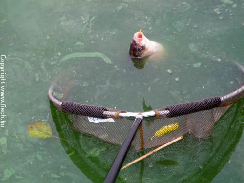 Pistabácsi a szebbnél szebb kárászok folyamatos kitessékelésével és leplezetlen örömével tudatta, hogy sikerült egy újabb életre szóló élménnyel megörvendeztetnem. A lelkivilágában már-már a megnyugvás jeleit véltem felfedezni, amikorra egy beköszönő ponty sikeresen megemelte a pulzusszámát. A szákolást követően már a fotót sem lehetett kihagyni, hiszen a tizenöt perc hírnév jár mindenkinek. A fényképezkedést hirtelen kellett bonyolítani, ugyanis a másik kapásjelző is már a botnak feszült...