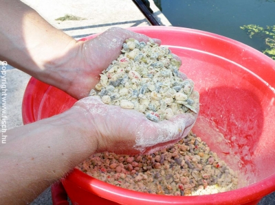 Tipp: Egy zacskó etetőanyag ragasztóval 3-4 kg szemest is könnyedén megragaszthatunk.