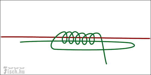 Itt sokakban felmerülhet a kérdés, miért karika, miért nem forgó. A válasz egyszerű, mert a főzsinór végére én mindig forgókapcsot kötök, hogy ne kelljen az apró gyűrűkön fűzögetni a zsinórt. Egyszerűen beleakasztom és kész a felszerelés.