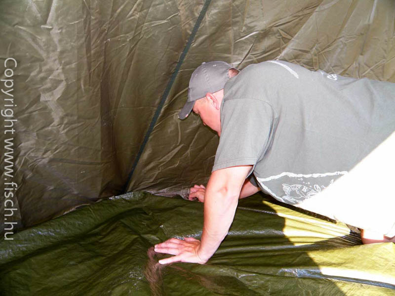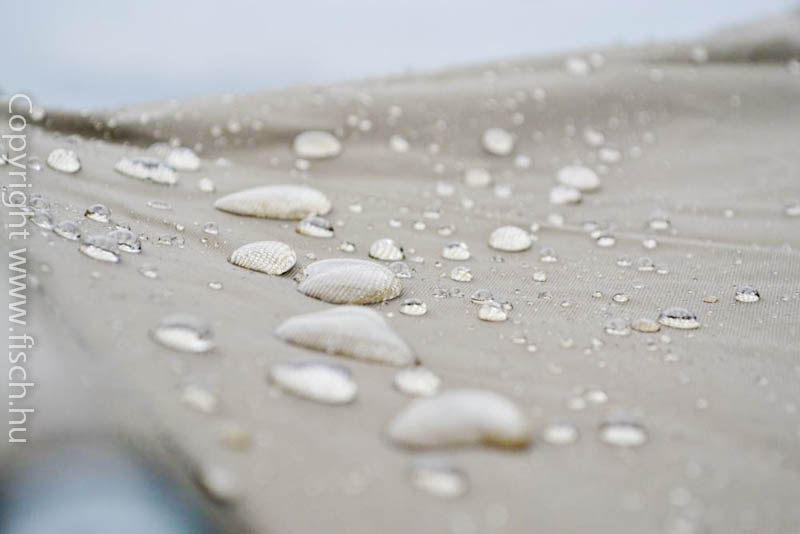 Jól látszik a speciális bevonat a sátor anyagán. ez bizony vízálló!