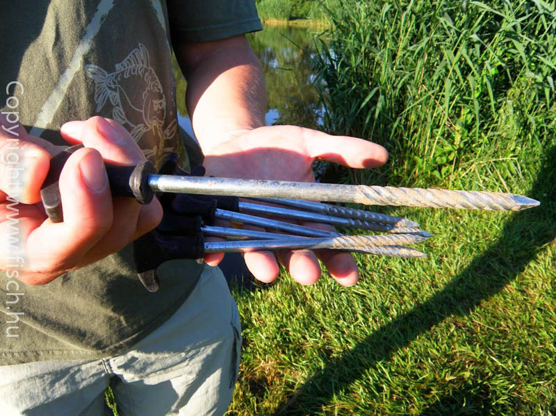 Jöhet a rögzítés a leszúrók segítségével. A képen jól látszik, hogy ezeknek a felülete úgy lett kialakítva,