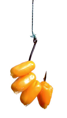 Még a tulajdonságok felsorolásából kimaradt a szín. Ebben megoszlik a horgásztársadalom véleménye. Vannak, akik szentelnek neki tulajdonságot, s vannak, akik nem. Egyes felmérések szerint a pontyok nem látnak színeket, csak árnyalatokat. Ennek ellenére, ha nem keltünk feltűnést az előnyünkre válhat. Már kapható speciális terepszínű horog is, de az általános horgásznak megfelelhet a sötét (B) esetleg arany (G) vagy piros színezet (R). Tiszta vízben kerüljük a fémszínű (N) horgokat. Ha a csalihoz választunk horogszínt, akkor az a pontyoknak nem fog feltűnést kelteni. |