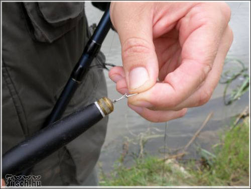 Csatlakoztassuk a főzsinórra az etetőkosarunk fölé.
