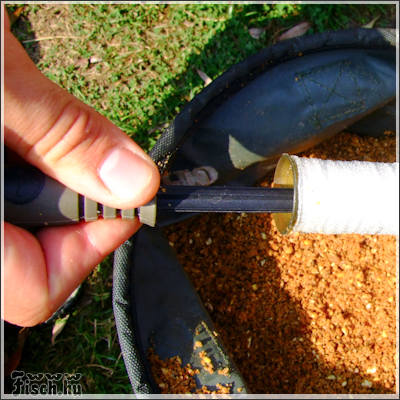 Tipp2: A tömény aromával bekevert etetőanyagot nem kell hagyni pihenni. A háló feloldódása után sok apró szemcse felemelkedik, és aromacsíkokkal jelzi a halaknak a táplálék helyét.