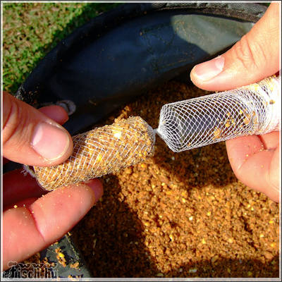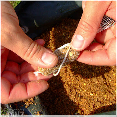 A hálóba töltött etetőanyag picit munkaigényesebb, de gyakorlatilag nem vesz el időt a horgászattól. Amíg a bedobott szerelék várja a pontyokat a vízben, addig a parton el lehet készíteni a következő töltelékeket. Sőt, ha véletlenül megmarad egy-két darab, akkor azt legközelebb nyugodtan felhasználhatjuk. A tömény aroma rövid időre tartósítja az etetőanyag szemcséit. Légmentesen zárjuk le a következő használatig.
