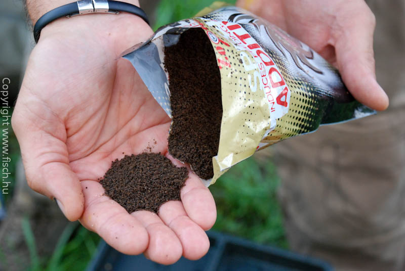 Ha ezekkel megvagyunk, már csak rá kell önteni az aromát. Persze a pelletünk már így is illatozik, halas aromát áraszt magából a fehérjék és a halolaj miatt. De én ezt még meg szoktam hinteni őrölt halibut pellettel. Aki már használta ezt az tudja, ennek az olajtartalma magasabb, lassabban oldódik, nem vesz fel vizet, és igen jellegzetes illata van.