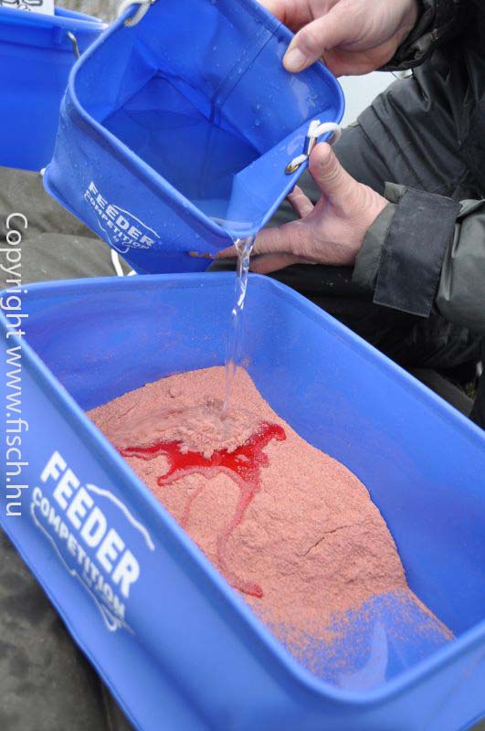 Rögtönzött etetőanyag keverés a vízparton. Még vödröt sem kell magunkkal cipelni ahhoz, hogy 1-2 kg eleséget „begyúrjunk” a horgászat előtt.