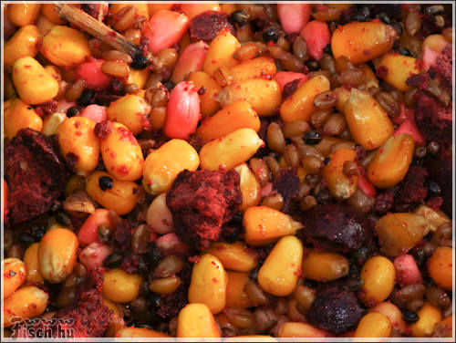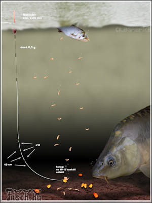 Én előnyben részesítem a kemény kukoricát, ugyanis ha van amur a vízben, akkor az is megáll az etetésen. Így színesedik a fogás. A kisebb szemes magok, és a csemegekukorica kiváló elesége a kárásznak és a compónak is. Mindkét halfaj járulékos a pontyhorgászatnál. Ha tömegesen ellepik az etetésünk, akkor az egyértelműen azt mutatja, hogy a nagyobb halak nem tartózkodnak ott. Aztán, ha egyszer csak megritkulnak a kapások, akkor nagy valószínűséggel valamilyen nagyobb hal tévedt elénk. Persze ezt mutatja az erős pezsgés is. Kisebb és nagyobb pontyok, ahogy túrják az iszapot, abból a gázbuborékok a vízfelszínre úsznak.