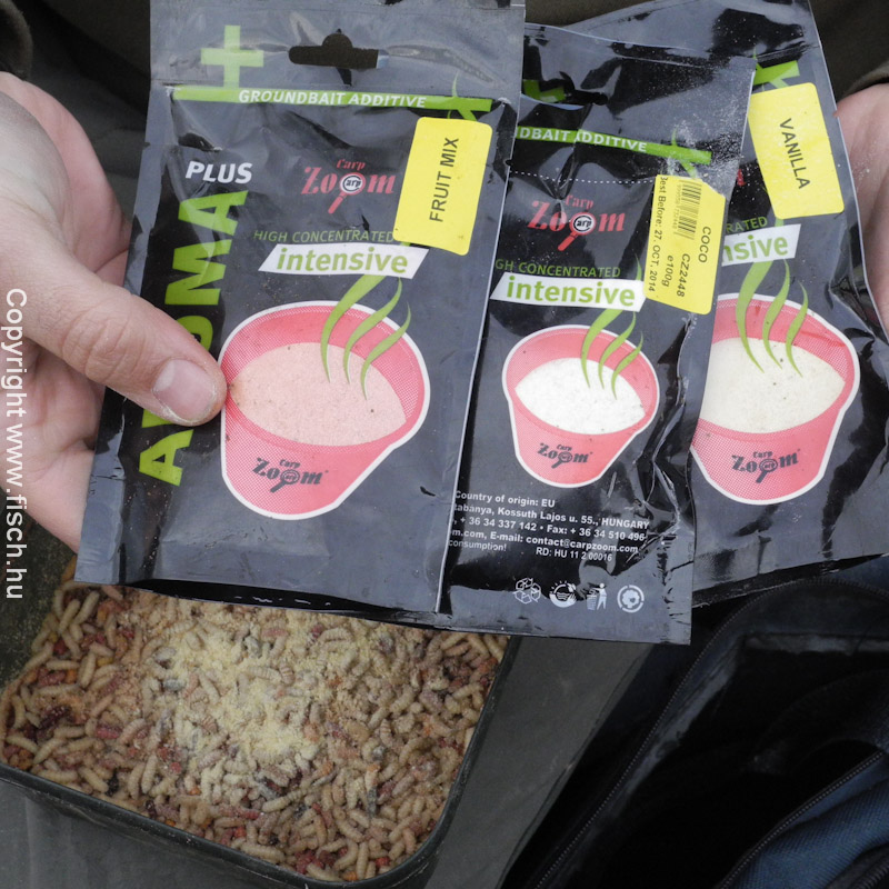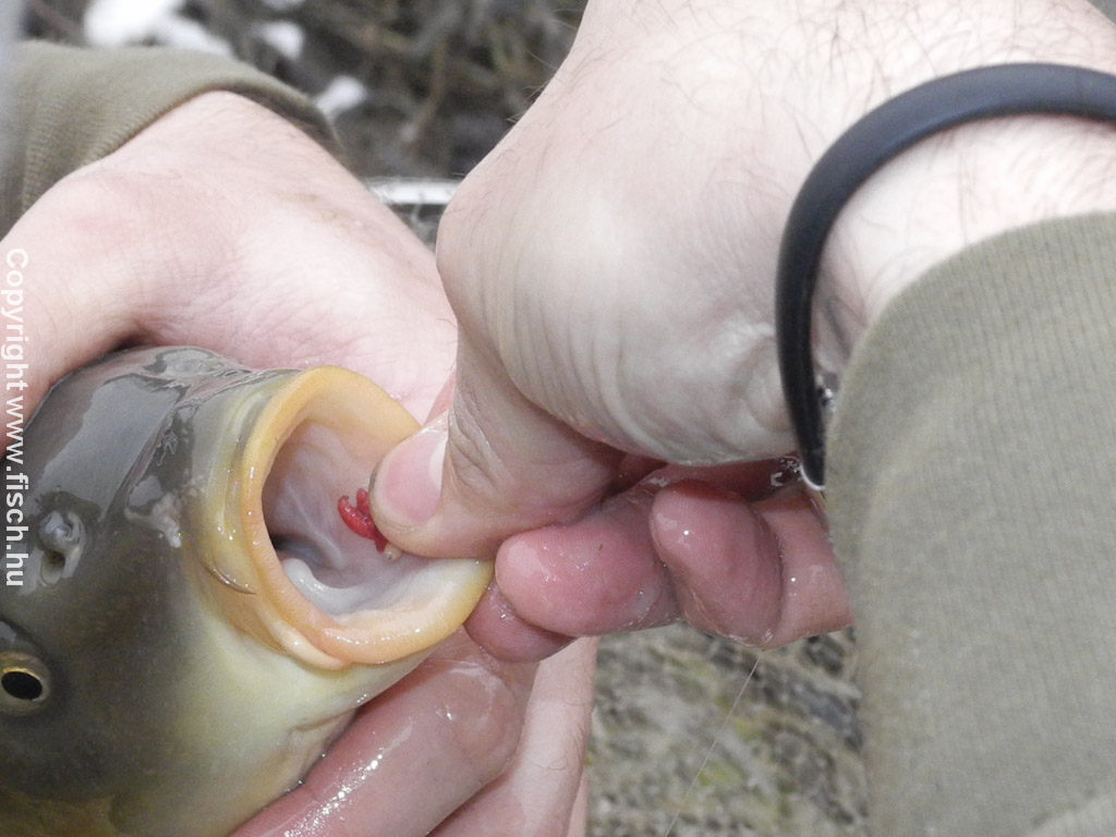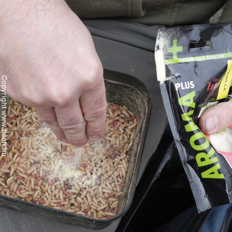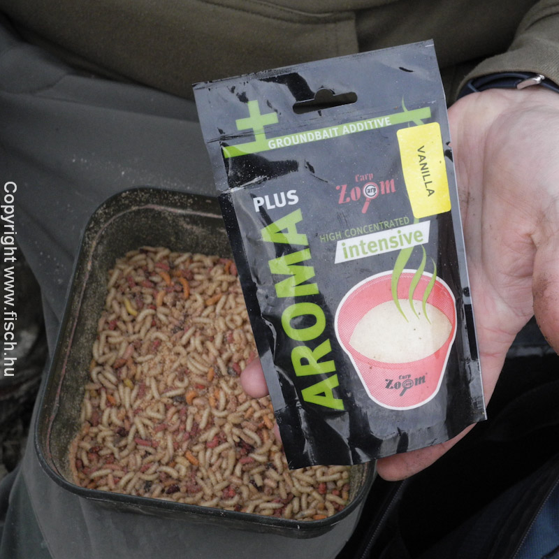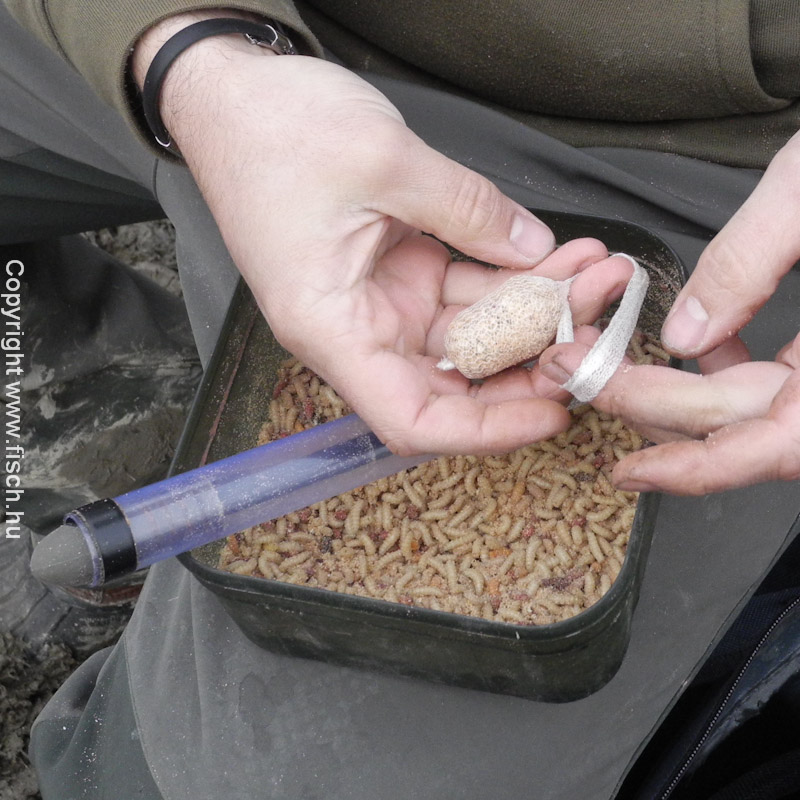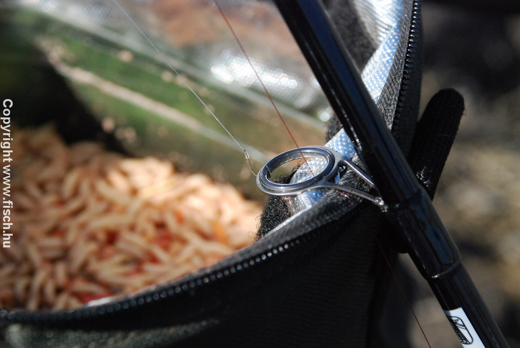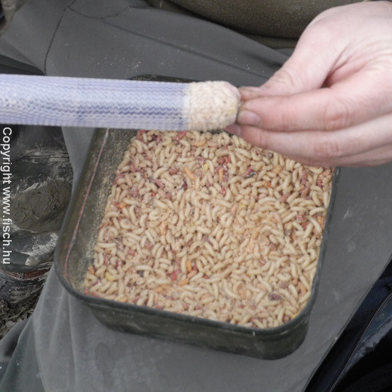 Húzza már! - lelkesedtem az első kapás láttán. De nem volt folytatás, töretlen lelkesedéssel csaliztam újra. Akik olvassák írásaim, azok már találkoztak a kedvenc csali kombinációmmal a két igazi és egy mű csontkukac szendviccsel. A mű csontkukaccal elrejtem a horog szárát, az öblébe pedig két piros élő féreg került. Ezt az alap csalit, ha nincs eredmény vele, esetenként valamilyen tömény aromában szoktam még megmártani.