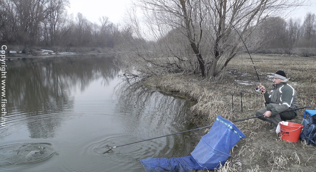 Vízhez érve értettem meg, hogy barátom miért győzködött: „Hozz magaddal csízmát, mert nagy a sár!". A parton elolvadó hó mindent feláztatott. Mindent vittem, csak azt nem, az otthon maradt. Így nekem csak a bakancs maradt, aztán a ráragadt súly miatt, majd három kiló plusz sárral szálltam meg a csónakot. Vízre szálltunk, ugyanis a kiszemelt horgászhely, az egyszerűség kedvéért a szemközti szigeten volt. Attila rutinosan átkormányozta a ladikból delegált kompunk, rajta a minimalizált „motyóval".