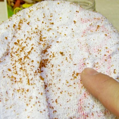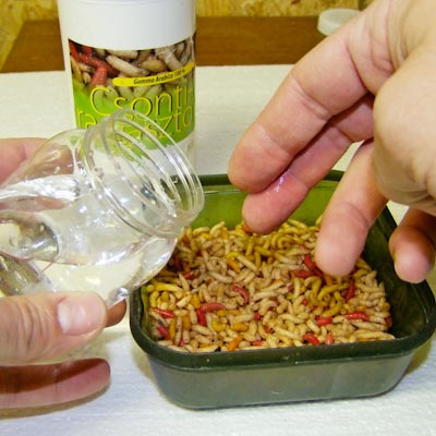 Először meg kell tisztítani a kukacokat. A ragasztóból csak nagyon keveset kell rászórni.