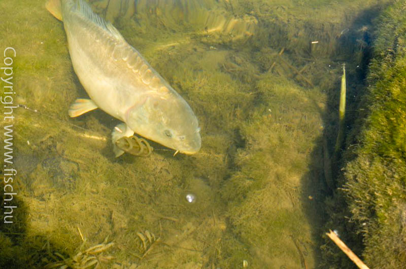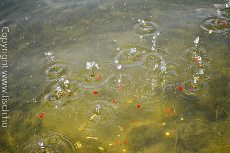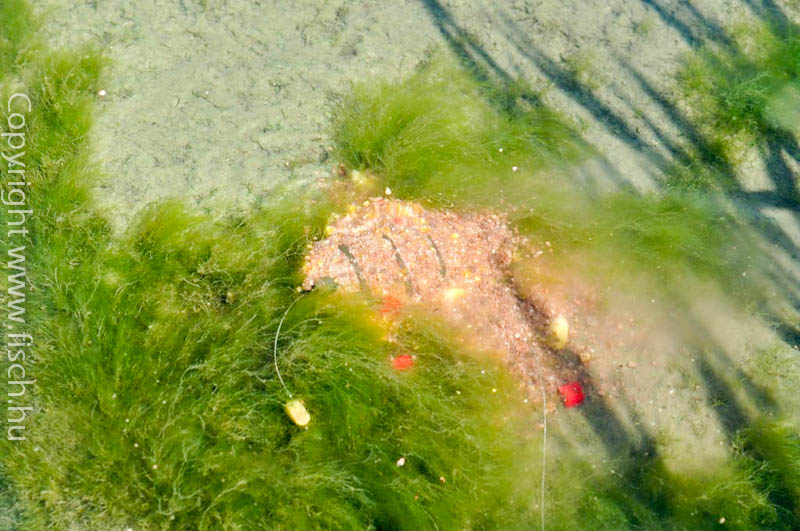 A sekély és tiszta vízben könnyen ellenőrizhetjük, hogyan működik a method kosárba töltött etetőanyagunk.